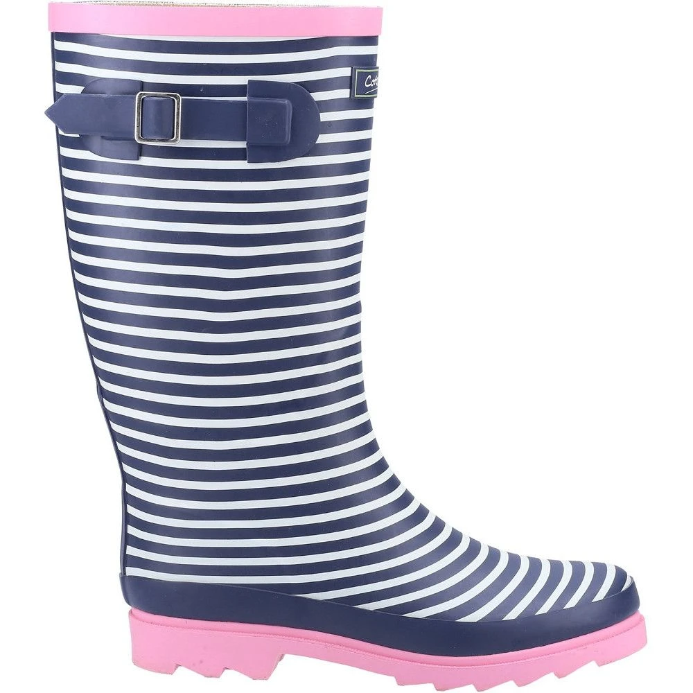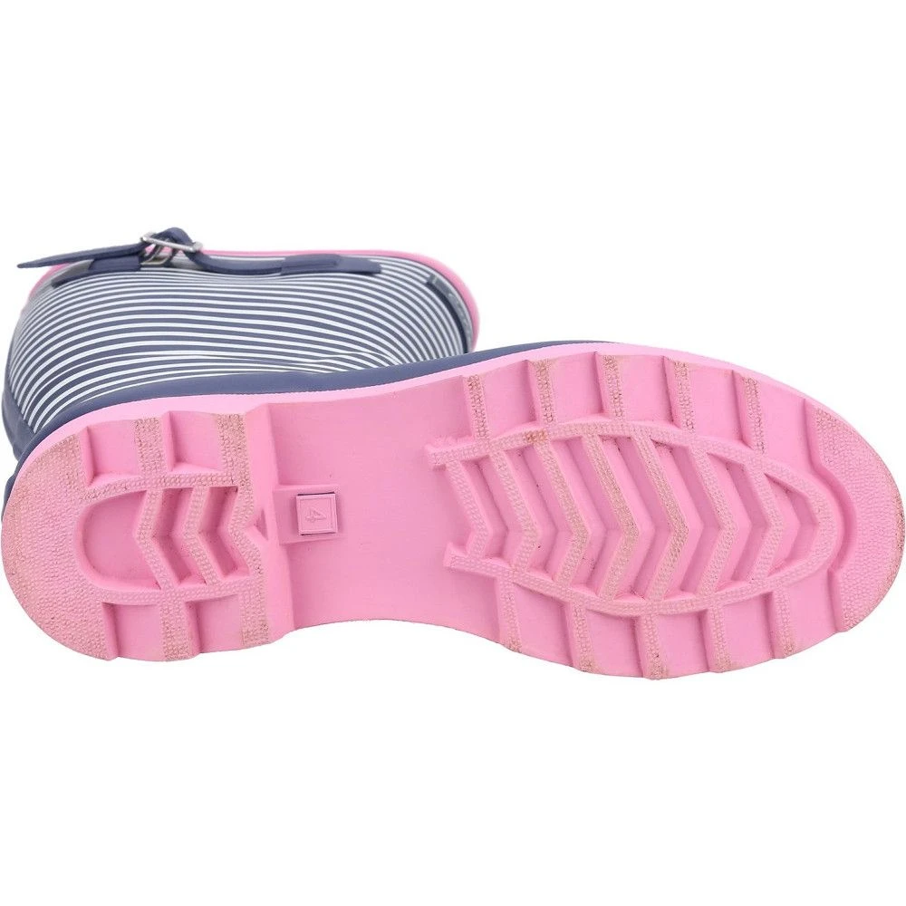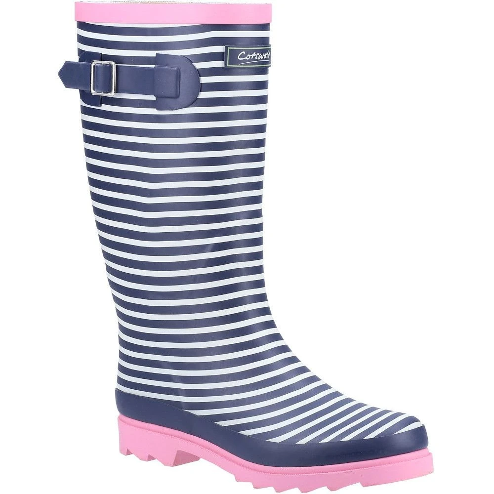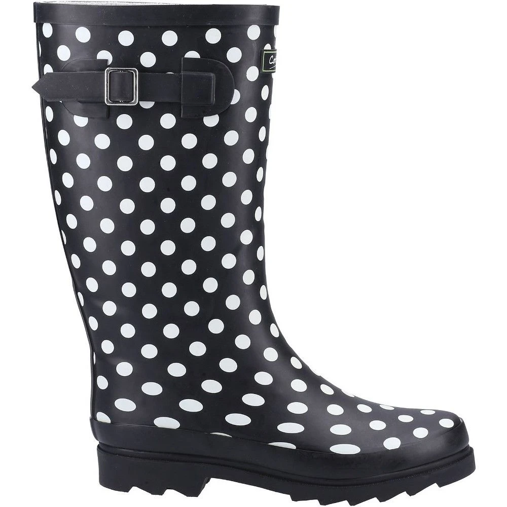 The Cotswold Ladies Chilson Wellington has a quirky design and high shine finish to go with is perfect functionality as a welly! It is fully waterproof so your feet will stay dray no matter the weather. The memory foam footbed moulds to the contours of your feet for a more comfortable fit. The low heel means this boot is appropriate for any outdoor occasion.
