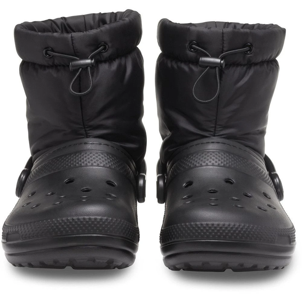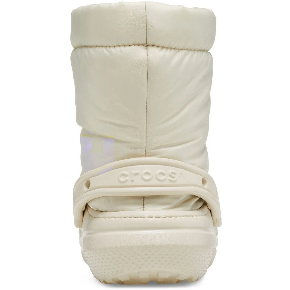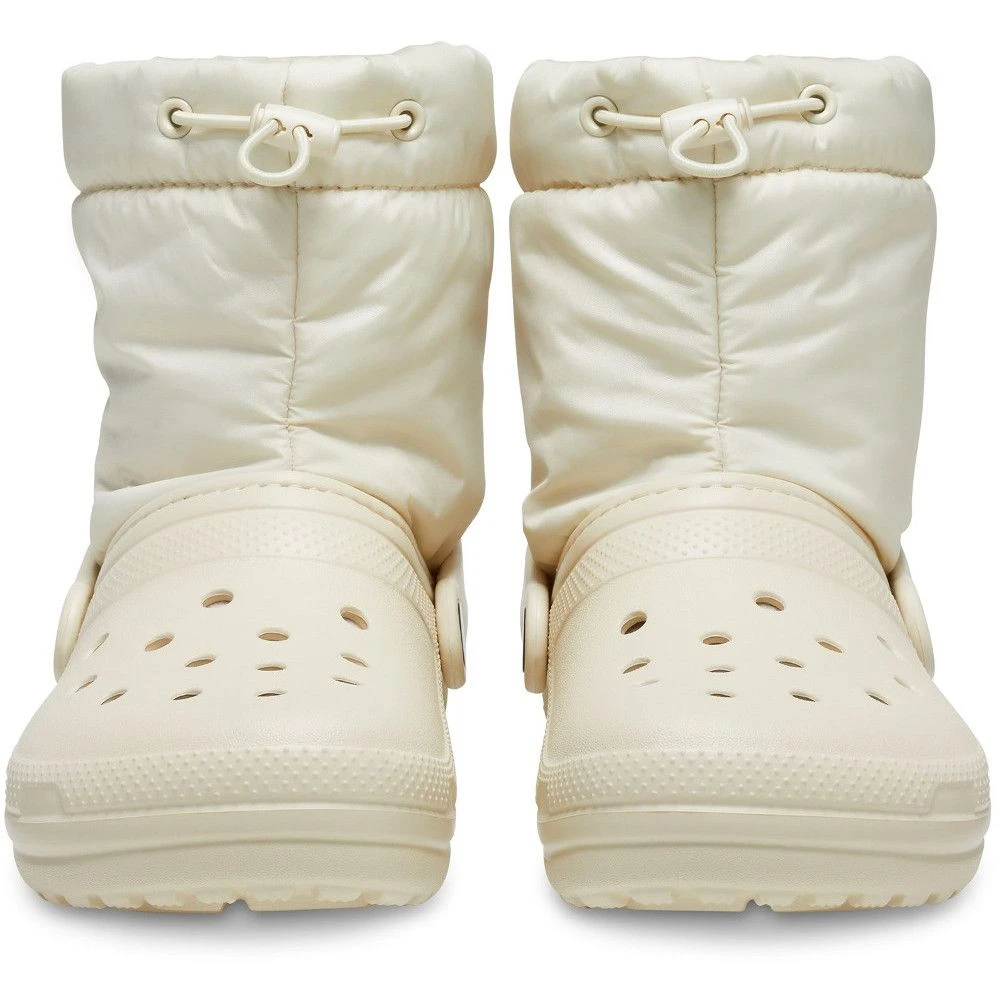 The Crocs Neo Puff is a funnel neck boot style clog to keep your feet warm this winter. The Classic comfort is paired with a lined nylon funnel neck to turn this into a snow boot. They are incredibly lightweight and easy to wear, and the pivoting heel straps offer a secure fit.