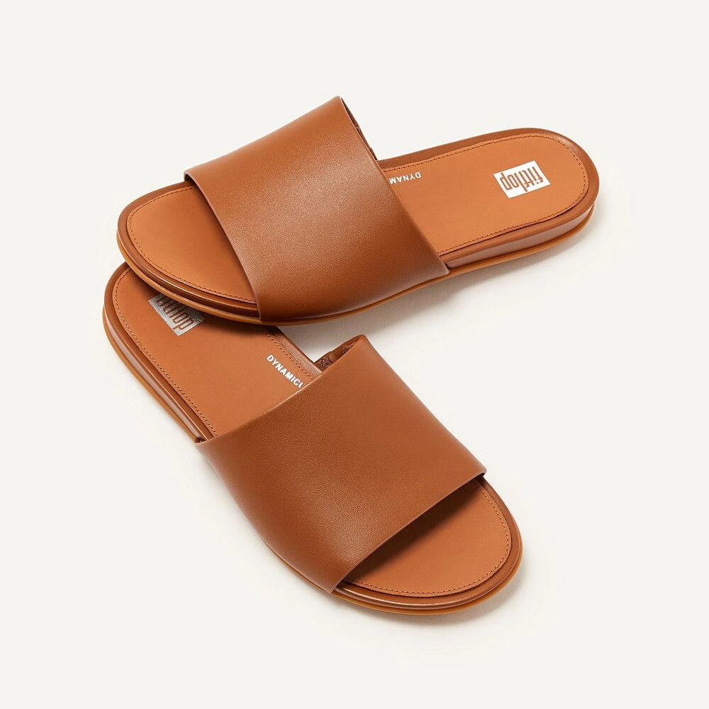 Slides that take ‘sleek and simple’ to the extreme – this version with a single, perfectly pared-back strap. They look like the kind of ultra-chic flats that can be hard work to walk in…but slip these on and you’ll swear you’re in your comfiest shoes. Thanks to anatomically contoured footbeds that give natural support and our high-rebound Dynamicush cushioning hidden in those light supersvelte soles. Crafted in soft leather, minimal go-with-everything sandals you’ll wear non-stop around town or on holiday.