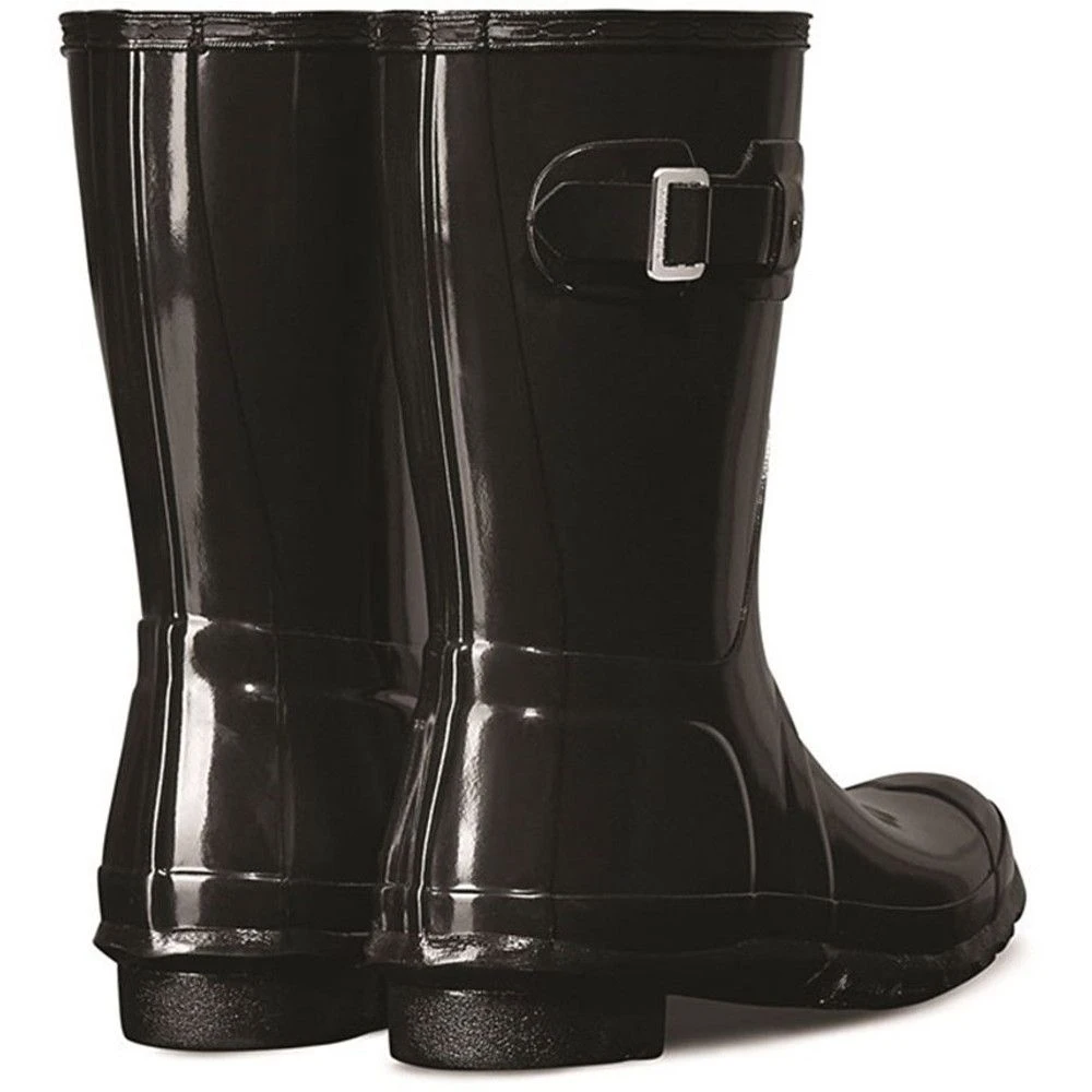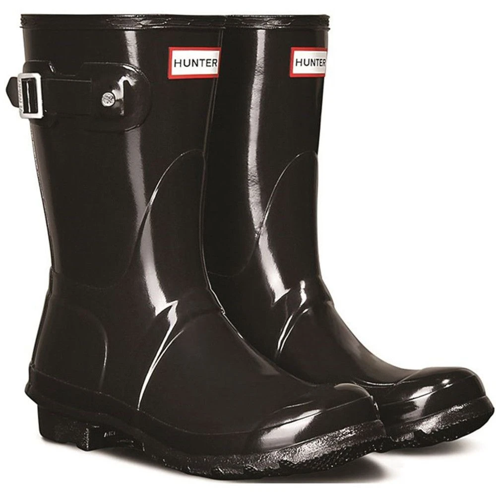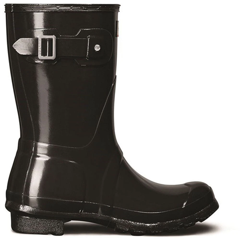 - Featuring the Hunter Original tread pattern, and a comfortable polyester lining, this glossy black waterproof boot is a rainy-day necessity.