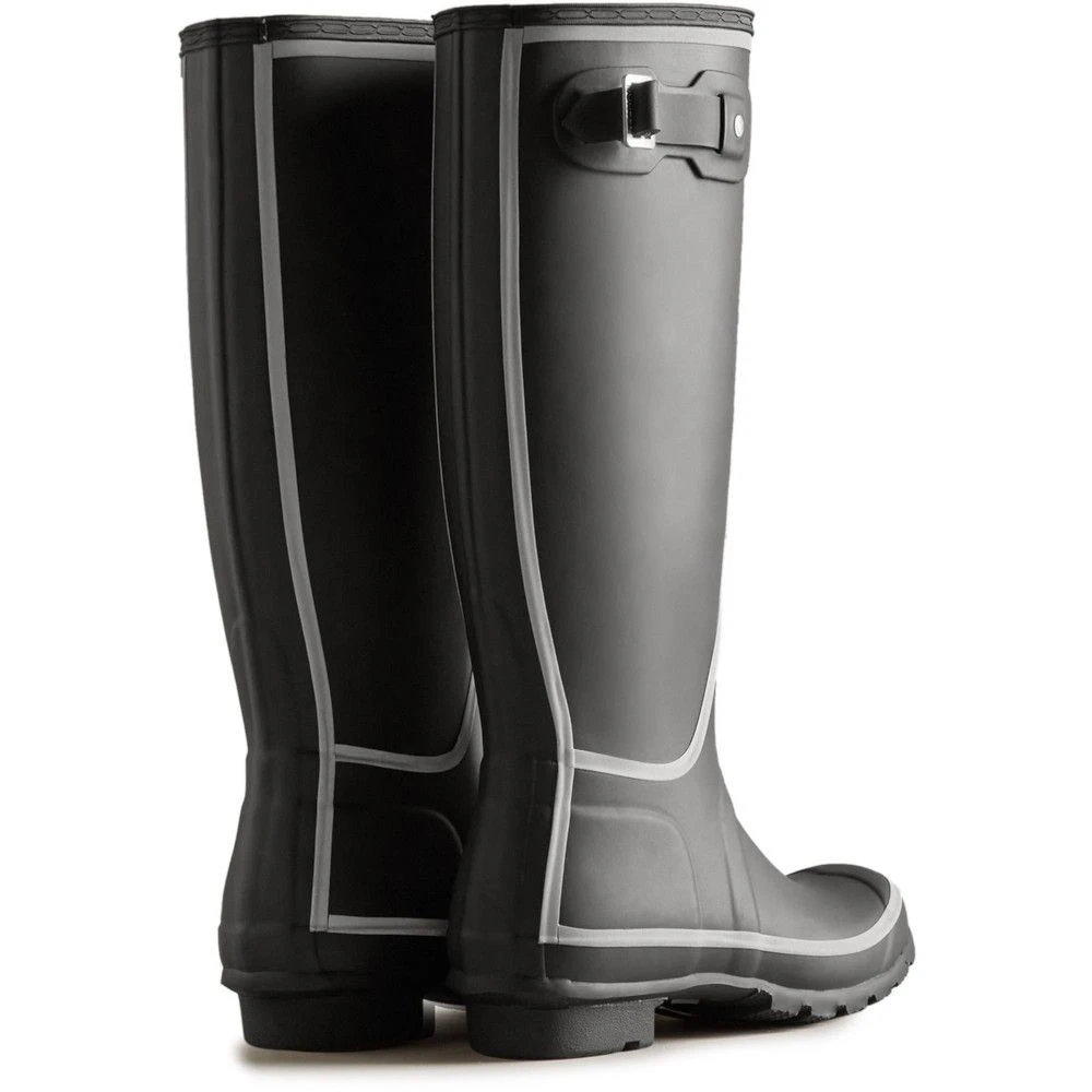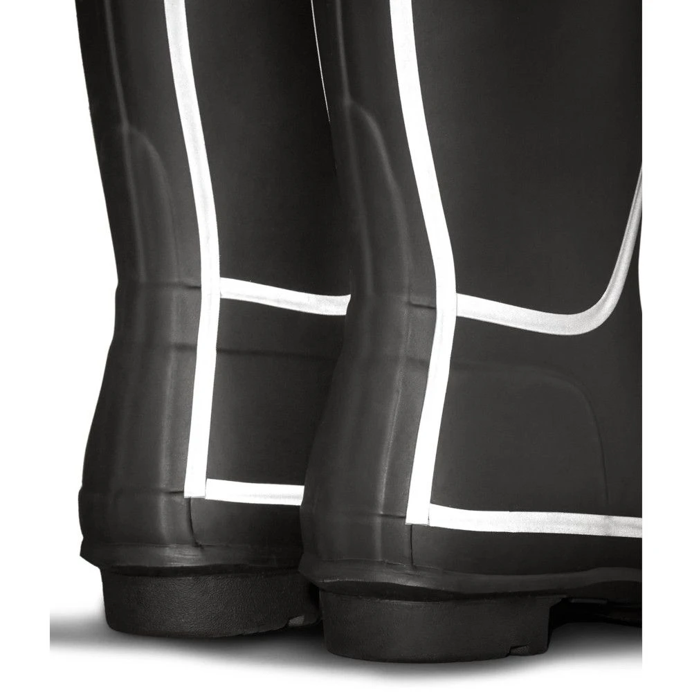 The iconic Hunter Original Tall Boot now features reflective silver taping to highlight joins of the boot, providing not only a cool look, but provides the necessary visibility in dark conditions. it is crafted from natural rubber which is 100% waterproof and has a recycled polyester lining for comfort.