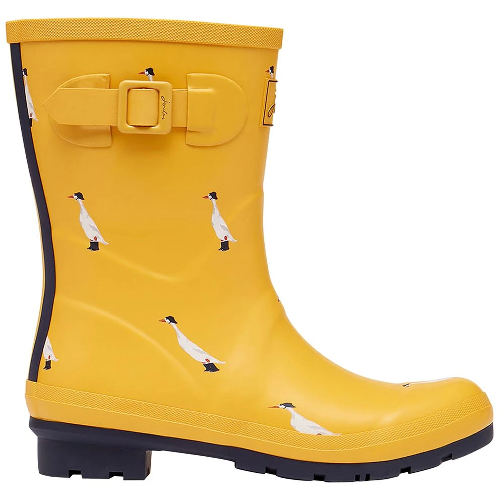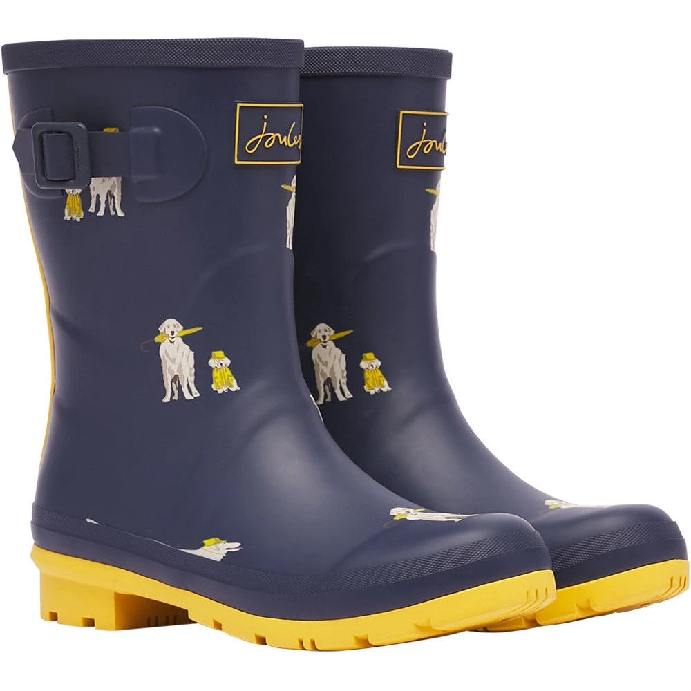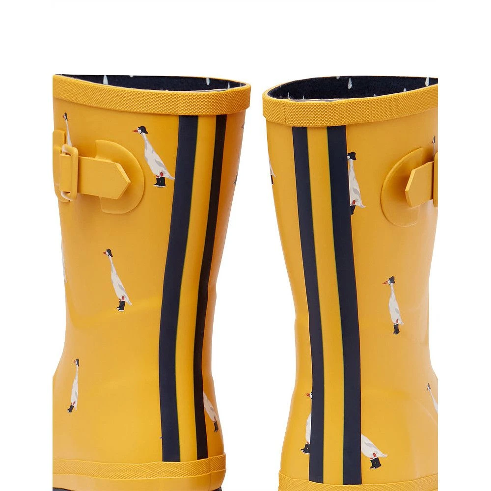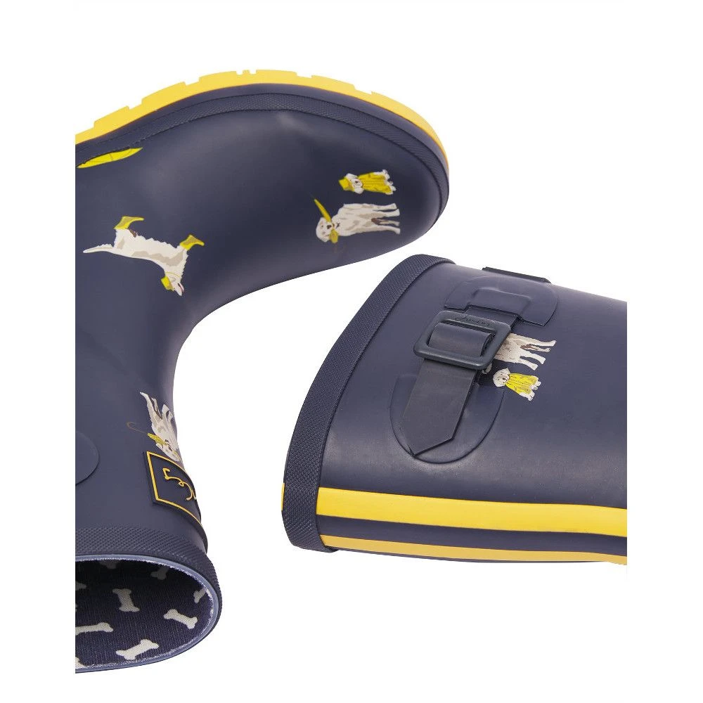 Inject a bit of sunshine into your life on a rainy day, with the Joules Wellibobs. This mid-height wellington boot is made from durable, hardwearing natural rubber which is complete waterproof and will keep your feet clean and dry. With a stylish side buckle feature and water-dispersing soles for a better grip. The shorter height allows for more freedom of movement for all different calf shapes and sizes.