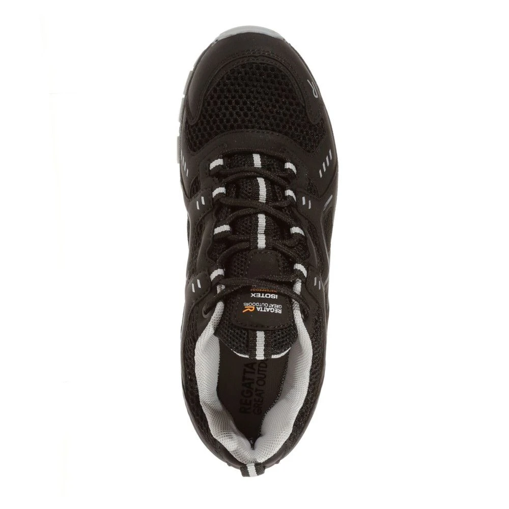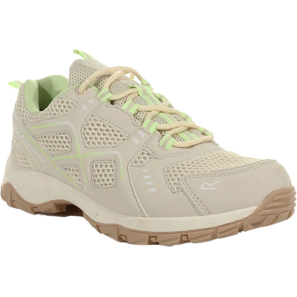 The ISOTEX waterproof and breathable Regatta Women’s Vendeavour Waterproof Lace Up Walking Shoes have a seam that is sealed with a permeable internal membrane lining. It sports a PU and meshes top with a die-cut EVA footbed for support and comfort underneath the foot. It has a brand-new TPR outsole with angled lugs for propulsion, braking, and decreased clogging. The outsole is self-cleaning.
