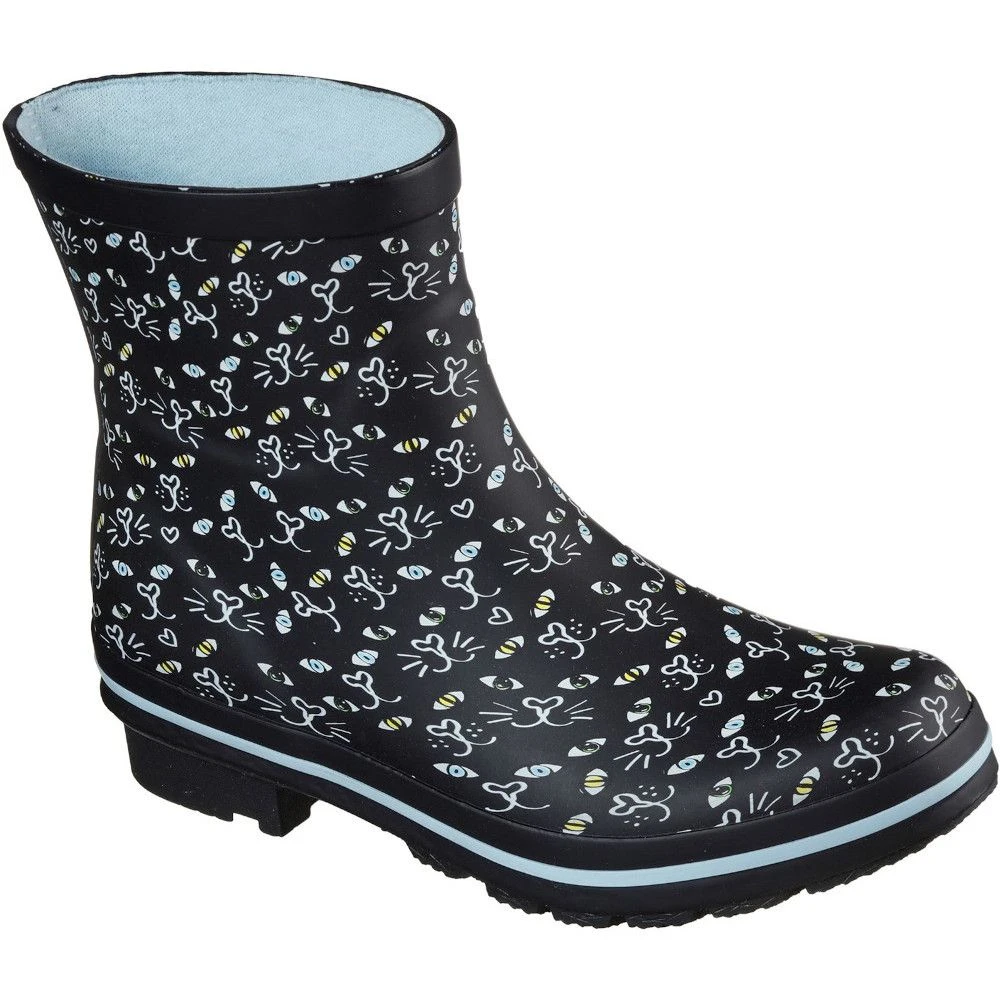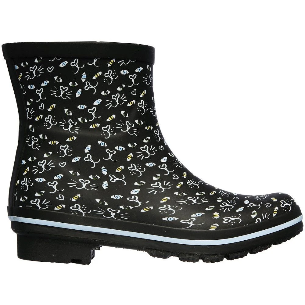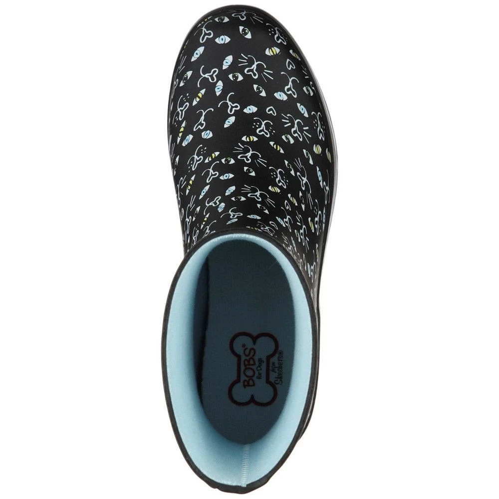 These beautiful Skechers Women’s BOBS Rain Check Boots will keep your paws dry! It features a two-colour artistic ‘Picatso’ cat face print all over and a slip-on casual low mid-calf height rain boot for easy on and off. It boasts a seam-sealed waterproof design that is ideal for wet days. Its elegance is enhanced by the sculpting detailing and the BOBS for Paws bone-shaped logo detail on the side panel. For added pleasure, it includes a variety of colourful embellishments and breeds.