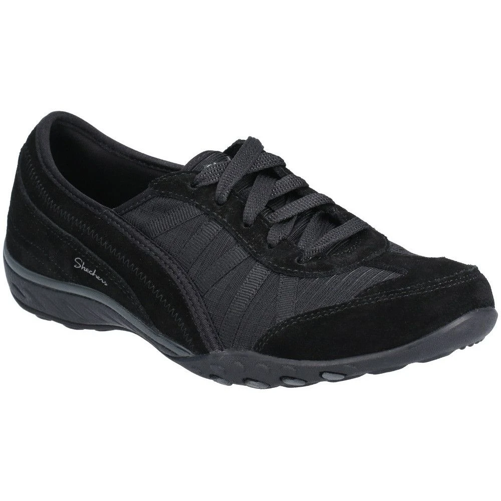 Complete your look with these women’s shoes from the Skechers Breathe-Easy-Weekend. The shoes have been fashioned from superior quality genuine leather for durability and style. The soft suede and mesh fabric upper of the shoes ensure breathability while the lace up design provides a secure fit and convenience in wearing. The shoes also feature stitch detailing and overlay accents for added style. The air-cooled memory foam insole of the shoes provide extra cushioning for a comfortable wearing experience.