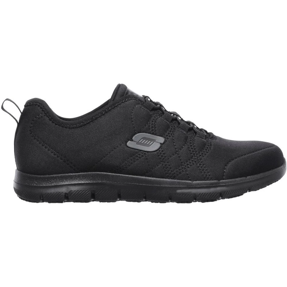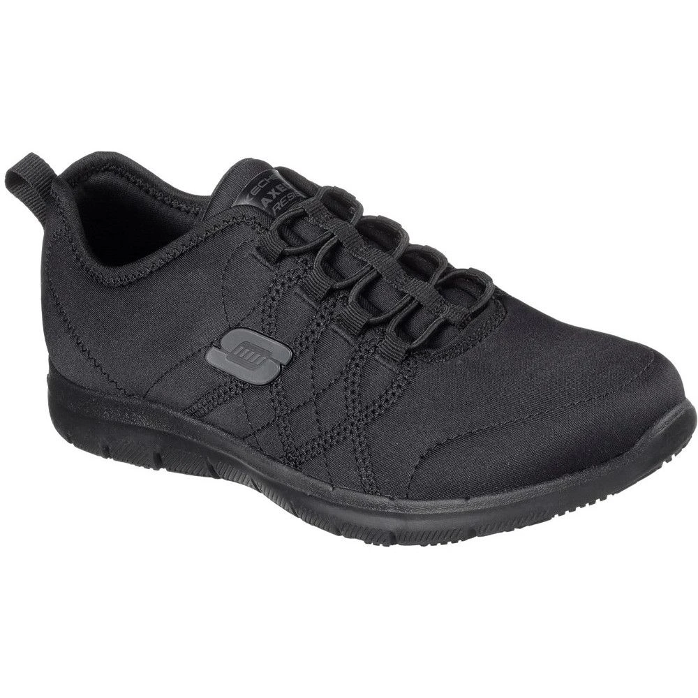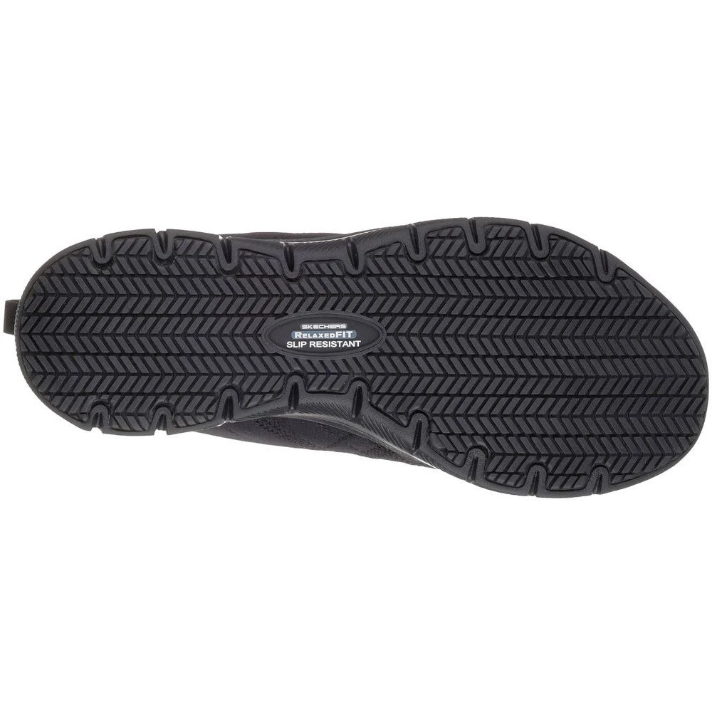 The Skechers Ghenter Srelt Womens safety shoes are the perfect mix of style and protection. This slip-resistant sneaker features a heathered jersey knit upper with a slip-on bungee-laced front and Air-Cooled Memory Foam removable cushioned comfort insole. The slip-resistant traction outsole also has oil resistance, for extra protection in those slippery environments.