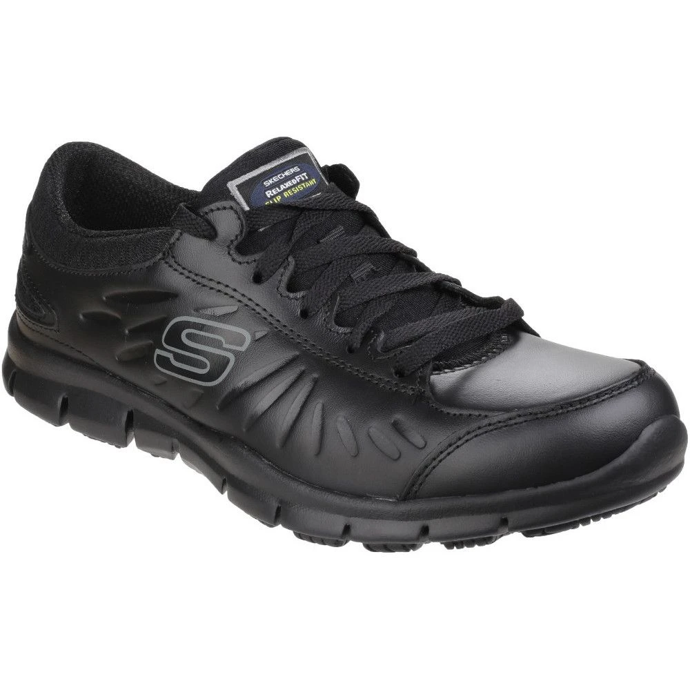 - Smooth solid leather upper. Lace up work shoe.