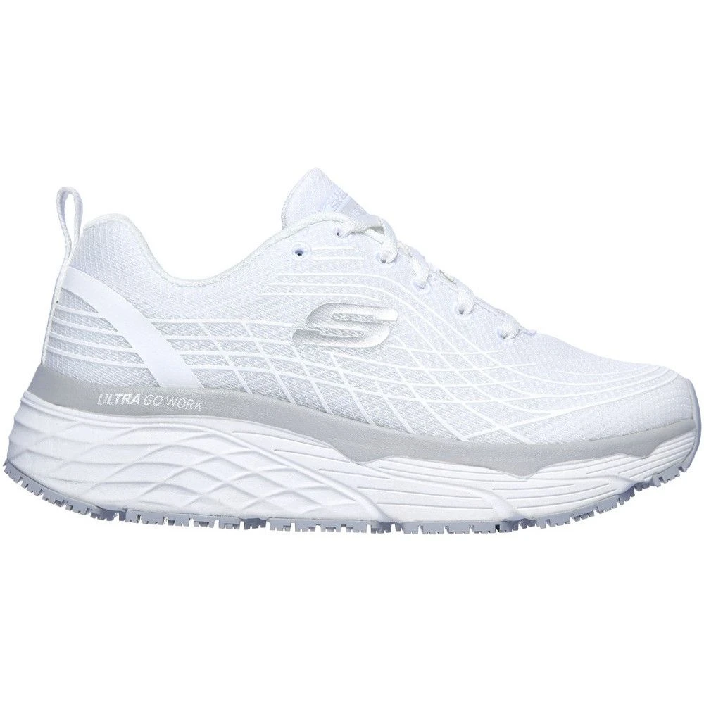 The Skechers Womens Max Cushioning Elite is the perfect casual work shoe for all day comfort and safety. The slip-resistant traction outsole also has oil resistance, so you’ll safer in environments where spillages often occur. This relaxed fit, lace-up shoe is very comfortable and is made from a durable mesh fabric.