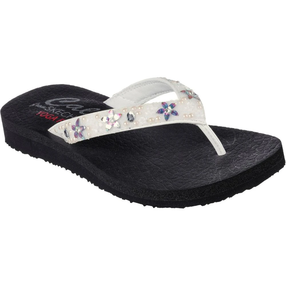 - Yoga Foam cushioned comfort footbed. Synthetic upper with pearl and flower embellishments.